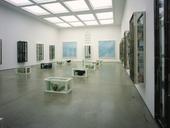 Science and our unquestioning faith in the power of pharmaceuticals remains one of Hirst’s most enduring themes. These ideas are investigated in the installation Pharmacy (1992) as well as in the ‘Medicine Cabinets’ and ‘Instrument Cabinets’ which display a cornucopia of reflective, precision-tooled surgical implements within steel and glass cases. Other sculptures are more celebratory in tone such as Hymn (1999-2001), a polychrome bronze sculpture which reveals the musculature and internal organs of the human body as they are presented in toy-like anatomical models enlarged to a monumental scale.