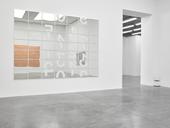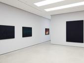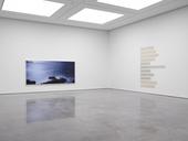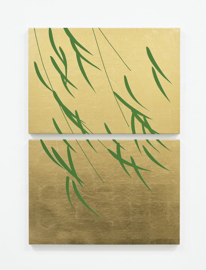 Recent multi-panel paintings, such as Almond’s new series of works, ‘Inari Chimera’ (2023–24), are installed to create a single, extended composition. ‘Inari Chimera’ comprises a matrix of digits in Helvetica font, each symbol and number fragmented as though a cascade of glitching, digitised time. Running horizontally across its centre, six zeroes appear as faint, waning moons, each formed of thin strips of gold. Echoing the titular ‘chimera’ that remains unknowable, these zeroes evoke the integer’s spiritual dimension in that, for Almond, the zero is ‘the nothing that holds everything together’. Across the artist’s large-scale painting, sculpture, photography and moving image, Almond maintains a deliberately ambiguous and enigmatic enquiry into the means by which we think, experience and relate to time.