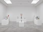 Altmejd described himself early in his career as a ‘process artist’. His works not only reveal the process of their making but suggest that those processes have simply been paused in their unfolding. His monochrome relief panels are austere in comparison to the heads, focusing our attention on the plaster-like material and the actions wrought on it − where it has fallen in wet splats; where a brittle, chalky surface is scratched or fractured; where hands have gouged and clawed. Hands themselves, in cast form, appear and multiply in some of the sculptures, fostering the illusion that the works create themselves. Monumental bronze figures, such as the ‘Bodybuilders’ and the ‘Watchers’, are similarly engaged in their own making or unmaking, sprouting hands that clutch and mould the very substance of their bodies.