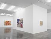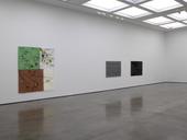 Fusing symmetry with asymmetry and forms that double and reduce with organic free-flowing parts, they deal with the ‘ends and beginnings of life and matter’, foregrounding themes of desire, joy, intimacy and tenderness, suggesting how these states can forge a space for resistance. Taking their inspiration from the literature of marginalised voices: of women writers, gay writers or writers of colour, and adopting John Cage’s adage to ‘be unfamiliar to yourself’, they embrace intuition, flux, error in as much as they are structured around harmonious abstraction. Pushing her abstract language to the limit by choosing gestures, colours and ways of making that are hard to control or distinctly uncomfortable, Rankin embraces the possibility for their formal collapse. Making the thread behave like paint and, at times, the paint behave like thread sets up a material engagement, a back and forth where the eye moves all around the pictorial forms and where different passages echo and mimic each other. While the organdie works referenced the celestial, Rankin attempts to capture this same ‘deep space' within her paintings. Emphatically object-like, they are sculptural, with heavily embroidered sides featuring sewn words and phrases – like the spines of a book – as if pushed off the frontal area of the painting. Exploring what it means to hold ‘meaning’ in form, Rankin unravels it, remaking the ‘heroic’ painterly mark as a careful, sewn ‘feminine’ gesture.