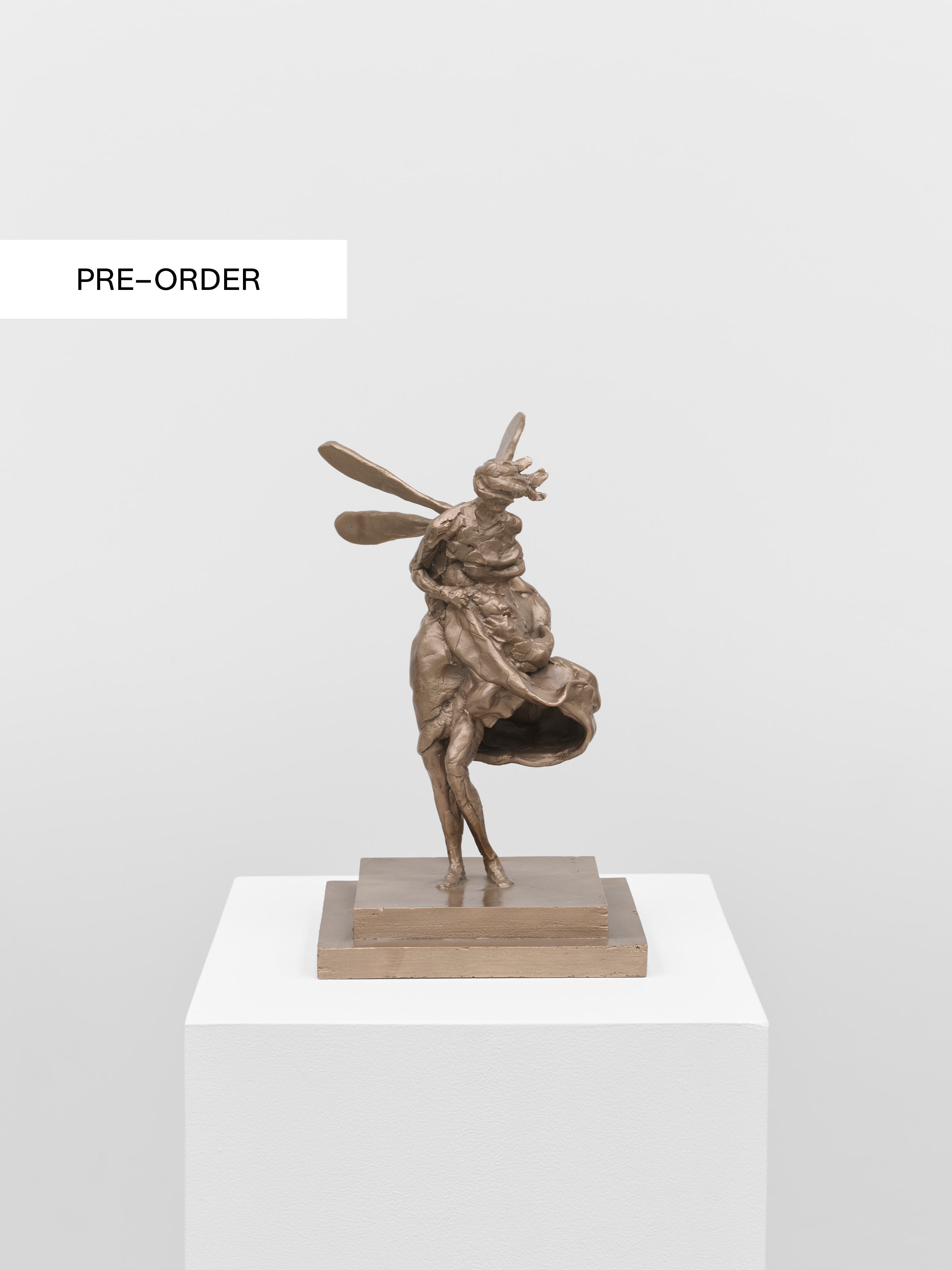 Pixie is a bronze multiple by Los Angeles-based artist David Altmejd. Born of British folklore, the pixie is a childlike creature fond of dancing and making mischief. Rendered in a golden bronze, this pixie, with its ragged garments lifted to reveal delicate limbs, seems to have been caught up in a breeze. Often depicted in fiction and folklore as malignant spirits, they are known to bestow favour or, equally, punishment, depending on their treatment by humans.