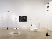 Among his many works involving electromechanical devices, often salvaged from army surplus stores, are the ‘Signals’ series, antenna-like sculptures topped with metal shapes or flashing lights that sway in response to the slightest vibrations. Takis also created reliefs, paintings and self-performing sculptures that use magnets to animate metallic objects suspended near their surfaces. While another series, titled ‘Musicals’, are automated instruments employing electromagnets and electric guitar pickups to create reverberant sounds the artist called ‘raw music’.