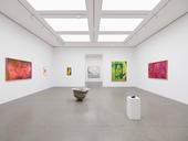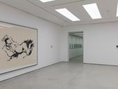 Most recently, Emin’s work has been charged with the seriousness of her health. In 2020, she was diagnosed with bladder cancer and underwent extensive surgery. Now living with a stoma, her paintings of the nude figure have a tempestuous energy. Emin’s graphic line, delicate or vigorous, imparts a sense of urgency; with each abandoned and assertive gesture, she is flaying herself open. Drips and obliterations point to the fluidity of the body, as it fluctuates between joy and suffering on its journey between birth and death.